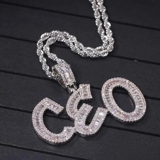 Hip-Hop Iced-Out Baguette Customized Name Necklace – Sairahaz Jewelers Shine like never before with the Hip-Hop Iced-Out Baguette Customized Name N...
