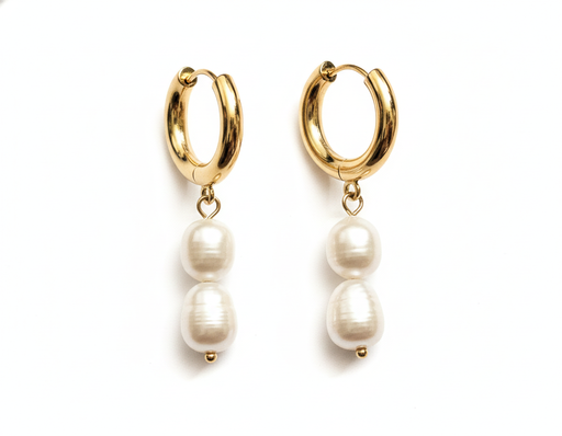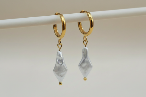 Premium Diamond Shape Hoop Pearl Drop Earrings combine bold geometry with soft sophistication. Crafted with 18K gold-plated stainless s...