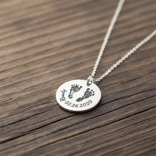 Baby Handprint or Footprint Necklace with Personalized Name and DateThis custom necklace turns a baby's tiny handprint or footprint into a polished...