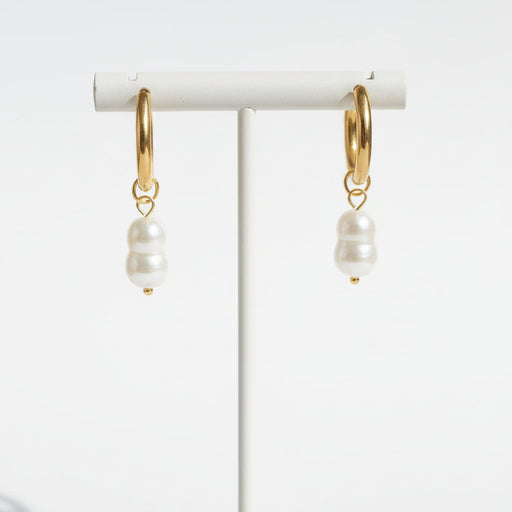 Dangle Huggie Hoops, Gift For Her, Baroque Pearls Genuine Real Pearl Earrings Handmade earrings, Genuine pearl earrings. 18k Gold plated hoop with ...