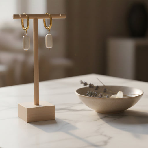 View full detailsDiamond Shape Studs with Baroque Pearl Drops blend clean geometry with organic beauty—sleek diamond-shaped studs anchor luminous genuine baroque fr...