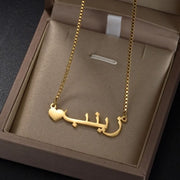 The Customized Arabic Name Necklace with Heart is a romantic and meaningful statement of love and identity. This Arabic name necklace showcases your chosen name in elegant script, paired with a delicate heart accent for a truly personal touch. Available in stainless steel, 14K gold name necklace, or 18K gold custom necklace, this personalized name necklace blends cultural elegance with modern style.