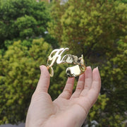 Bold Custom Name Bangle by Sairahaz Jewelers is designed to make your style stand out. This adjustable bangle can be personalized with your name, a loved oneβs name, or a meaningful word, making it the perfect accessory for any occasion. Crafted from premium stainless steel with high-quality plating, itβs built for everyday wear and long-lasting shine.