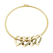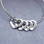 Celebrate love and family with the Family Custom Name Heart Bangle - Personalized Engraving from Sairahaz Jewelers. This beautifully crafted bangle features 1 to 9 hanging hearts, each custom-engraved with a name of your choice. Designed with a sleek, elegant finish, this meaningful piece is perfect for keeping your loved ones close.