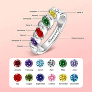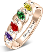 Show Mom how much she means with this Custom Birthstone Name Ring, beautifully crafted from durable brass and plated in radiant 18K gold. Designed to hold up to 6 engraved names and matching birthstones, this ring is more than jewelry — it’s a symbol of the love she carries every day.
