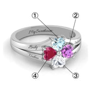 Sterling Silver 4 CZ Hearts Custom Name Birthstone Ring