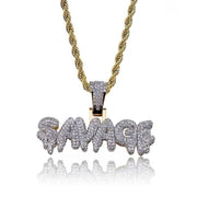 Iced Out CZ Drip Bubble Custom Name Necklace with Stainless Steel Rope Chain