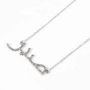 This exquisite custom necklace features your name in beautifully crafted Arabic script, elegantly encrusted with dazzling CZ stones for an eye-catching, radiant shine. Designed with a luxurious finish, this personalized piece is perfect for both everyday wear and special occasions.