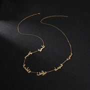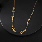 Multiple Arabic Name Necklace that celebrates family, heritage, and love in elegant Arabic script—personalize with up to three names to create a necklace as meaningful as it is stylish. Crafted in premium stainless steel or elevated in 14K and 18K solid gold, this piece solves the “ordinary jewelry” problem with a timeless keepsake that carries deep personal meaning. Each necklace is hand-polished and meticulously quality-checked for lasting brilliance, finished in your choice of gold, rose gold, or silver, and delivered gift-ready in a signature Sairahaz box with Free Standard U.S. Shipping and Express Shipping available at checkout.