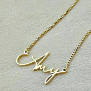 18K Gold Plated Font Name Necklace — a premium, high-quality personalized piece from Sairahaz Jewelers. Your name is styled in a beautiful cursive font for a clean, elegant look; crafted with care in hypoallergenic, nickel-free materials and finished in your choice of 18K Gold Vermeil, Rose Gold, or Silver, it’s a timeless way to celebrate individuality.