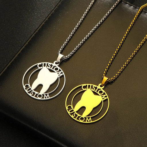 Personalized Dental Tooth Custom Name Necklace – Sairahaz Jewelers Celebrate your passion for dentistry with the Personalized Dental Tooth Custom N...