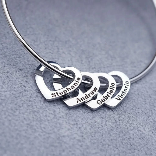 Family Custom Name Heart Bangle with Personalized EngravingThis personalized bangle brings multiple names together in one polished design with engr...