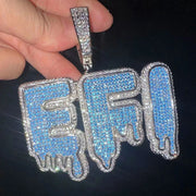 CZ Double Stack Blue Dripping Custom Name Necklace