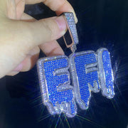 CZ Double Stack Blue Dripping Custom Name Necklace