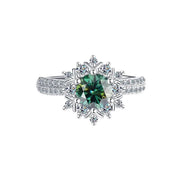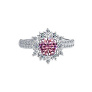 Round Cut Moissanite 1 Carat Stylish Engagement Solitaire Ring — This elegant engagement ring features a 1-carat round-cut moissanite center stone, known for its fiery brilliance and diamond-like sparkle. Surrounded by shimmering CZ accent stones that enhance its radiance, the design offers a refined yet eye-catching look. The ring is crafted in 925 sterling silver and comes in four stunning color options: classic clear, pink, blue, and green moissanite center stones — allowing you to choose the perfect style for your unique expression of love. This ring is not adjustable, offering a secure and traditional fit.