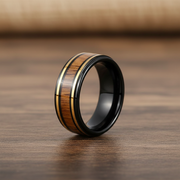 This 8mm black stainless steel ring with a matte brushed finish and a gorgeous Hawaiian Koa wood inlay will elevate your look. This ring is lightweight, long-lasting, and elegant, making it ideal for daily use, weddings, and vows. It is a significant option for contemporary men because of the distinctive Koa wood design, which stands for integrity and strength. This ring is the ideal combination of style and functionality thanks to its classic appeal and scratch-resistant surface. It's a stunning statement piece that can be worn as a wedding band or given as a gift.