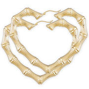 10k or 14k Real Gold Large Skinny Heart-Shaped Bamboo Hollow Earrings β Fine Jewelry, 2.9 Inches Wide