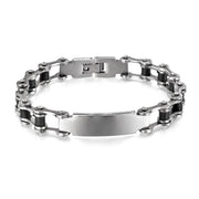 Ride in bold style with the Bike Chain Personalized Name ID Bracelet by Sairahaz Jewelers. Crafted from durable stainless steel, this rugged bracelet features an industrial bike chain link design with a custom engraved nameplate, making it a perfect gift for bikers, athletes, or anyone who loves edgy, personal accessories.