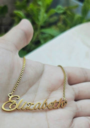Elizabeth Custom Name Necklace is a timeless piece designed to celebrate individuality and elegance—crafted from premium 18K stainless steel with finishes in gold, silver, or rose gold (18K vermeil), this necklace lets your loved one wear their name close to their heart as a daily symbol of style and sentiment. Each piece is hand-polished and meticulously quality-checked for lasting brilliance, presented gift-ready in a signature Sairahaz box with Free Standard U.S. Shipping and Express Shipping available at checkout, making it a perfect gift for birthdays, anniversaries, or any special occasion.