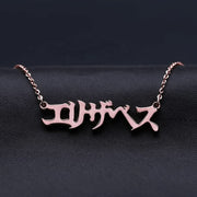 Japanese custom name necklace that turns your chosen name or meaningful word into elegant Japanese script—handcrafted by Sairahaz Jewelers in 18K gold-plated, hypoallergenic stainless steel for a refined, lasting finish; a sleek piece that solves the “generic jewelry” problem with cultural meaning and personal storytelling, hand-polished and meticulously quality-checked for lasting brilliance, delivered gift-ready in a signature Sairahaz box with Free Standard U.S. Shipping and Express Shipping available at checkout. (To personalize: please enter the exact Japanese characters you want in the order notes.)