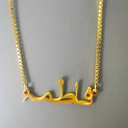 Personalized Arabic Name Necklace with Box Chain brings cultural elegance and modern design together while solving the challenge of finding jewelry that is both meaningful and premium. Customized with your Arabic name or a word of significance, this necklace is available in 14K solid gold, 18K gold plated, or full solid gold options, giving you the flexibility to choose luxury that matches your style. The sleek box chain paired with the classic Arabic script nameplate creates a timeless yet contemporary look—perfect for daily wear or as a heartfelt gift-ready keepsake, carefully polished, quality-checked, and delivered with Free Standard U.S. Shipping and Express options available.