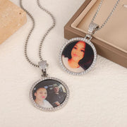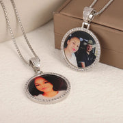 Picure Round Pendent CZ Frame Caharm Necklace