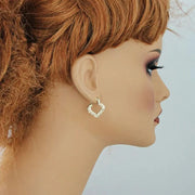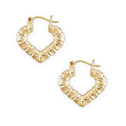 Small 10K Gold Puffy Heart Bamboo Earrings, 0.75 Inch Wide Perfect Baby Jewelry